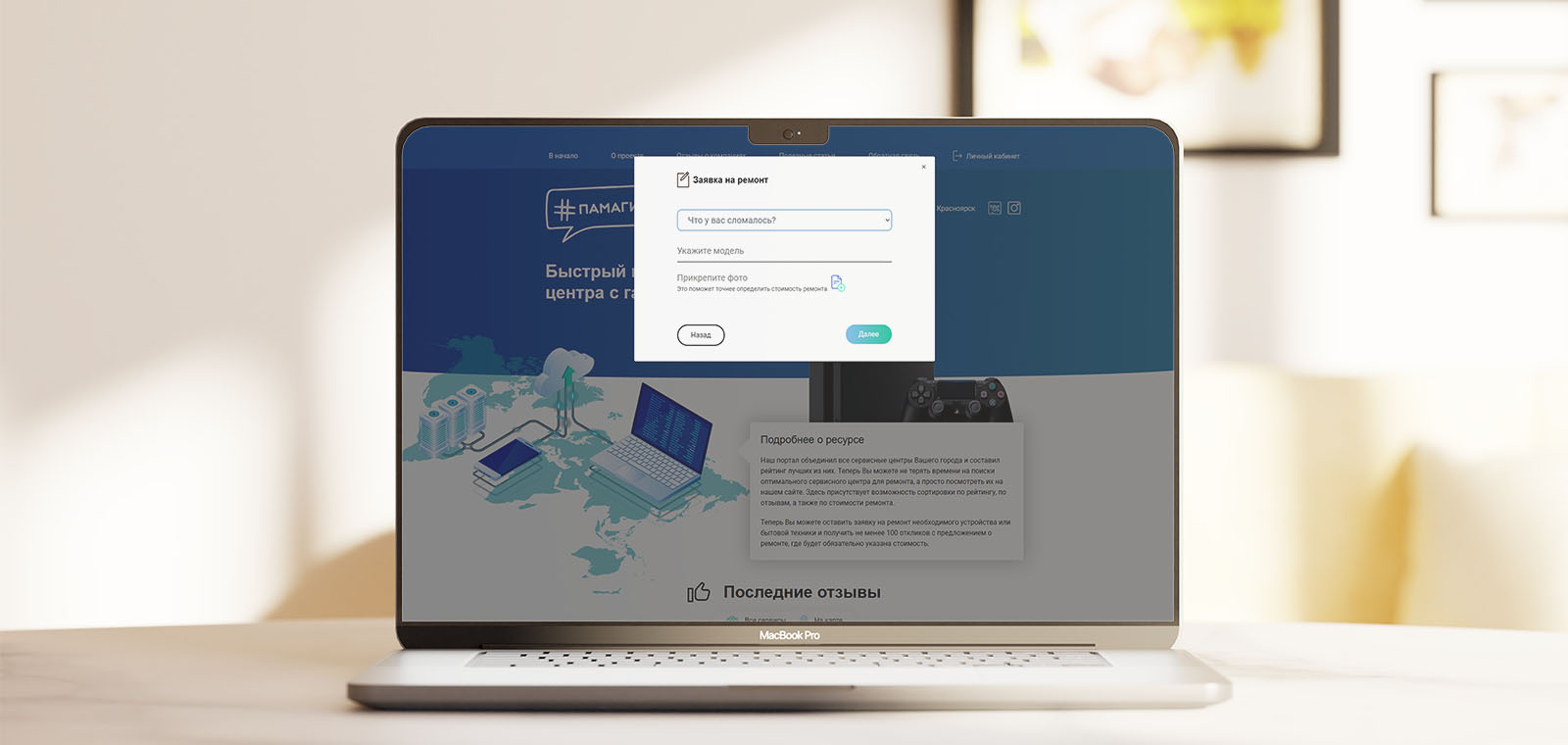 Сервис организован таким образом, что любой пользователь, даже без наличия аккаунта в системе может сделать заявку на ремонт и получить в дальнейшем предложения от сервисных центров.