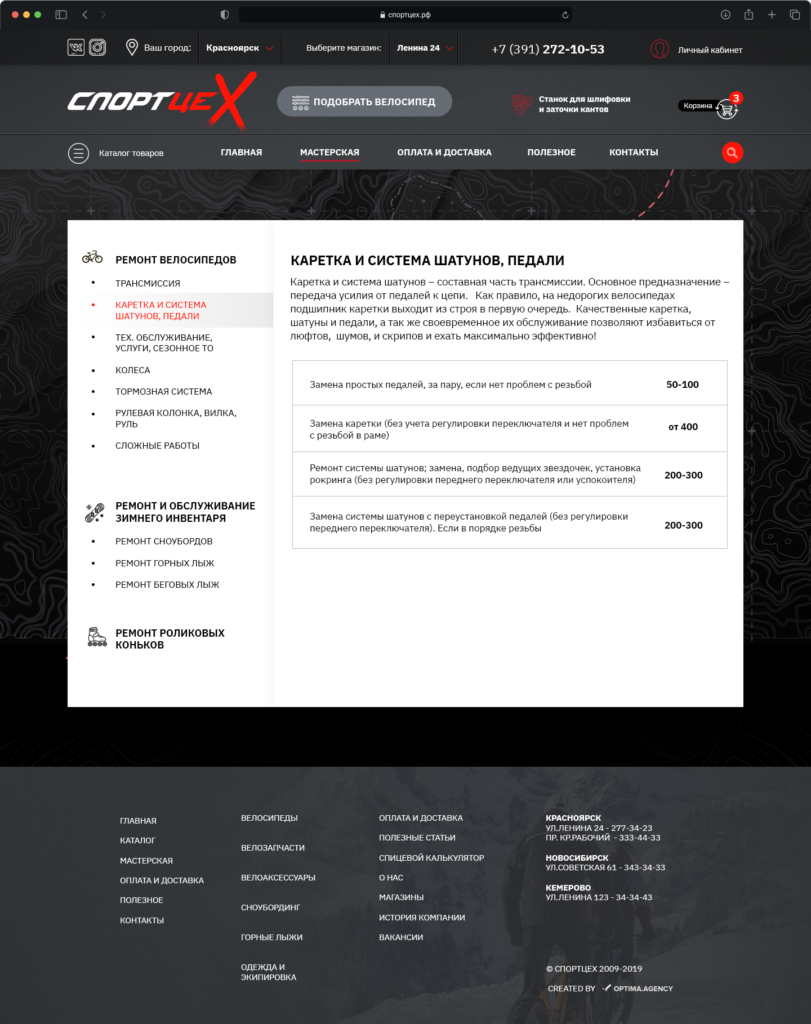Technical solution on 1C-Bitrix - the site is fully integrated with 12 warehouses in 1C, which results in complete business automation. We have achieved automation of orders - due to which different branches of the store have the opportunity to carry out full monitoring of orders, sorting orders, exchange with the customer’s warehouse through 1C, in real time there is an exchange of goods and remaining goods in warehouses, exchange of orders.