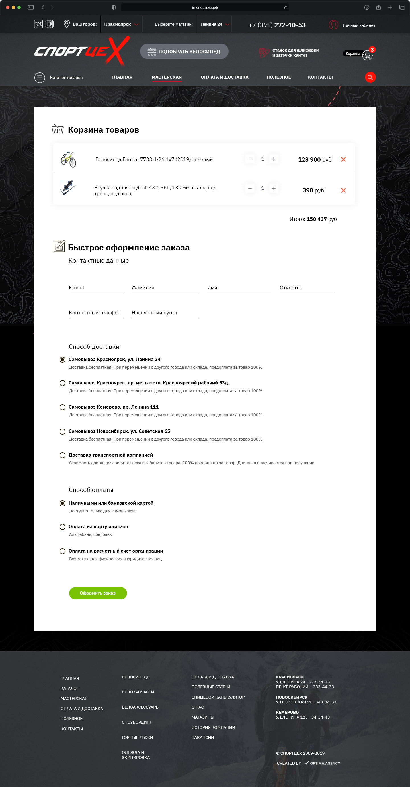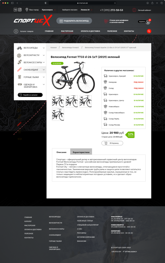 Technical solution on 1C-Bitrix - the site is fully integrated with 12 warehouses in 1C, which results in complete business automation. We have achieved automation of orders - due to which different branches of the store have the opportunity to carry out full monitoring of orders, sorting orders, exchange with the customer’s warehouse through 1C, in real time there is an exchange of goods and remaining goods in warehouses, exchange of orders.